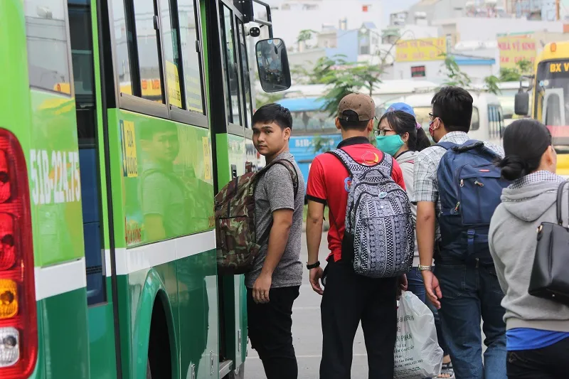 Sinh viên trở lại TP đi học sau thời gian nghỉ tết.
