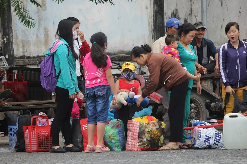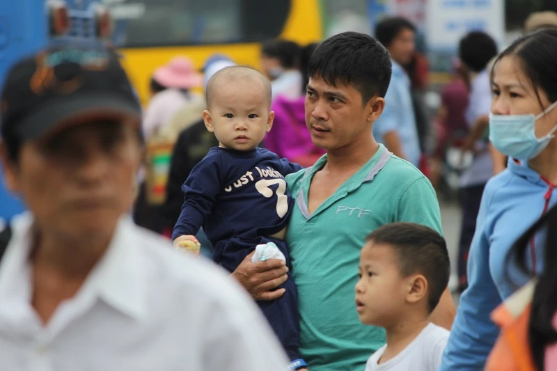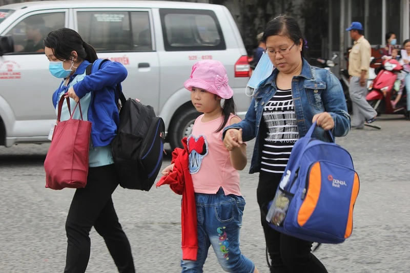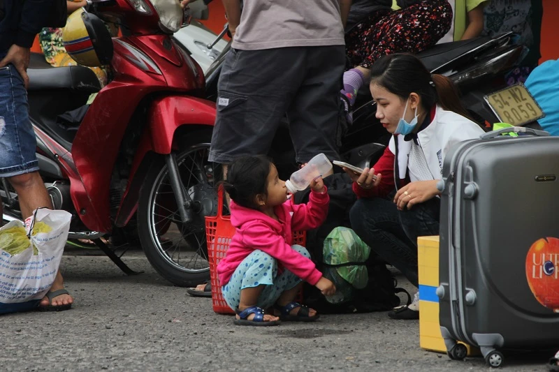 Các gia đình cùng còn nhỏ trở lại TP.HCM làm việc sau kỳ nghỉ dài ngày.