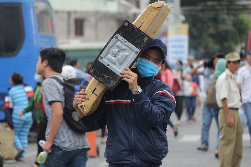 Người dân mang lỉnh kỉnh đồ đạc trở lại sau tết Dương lịch.