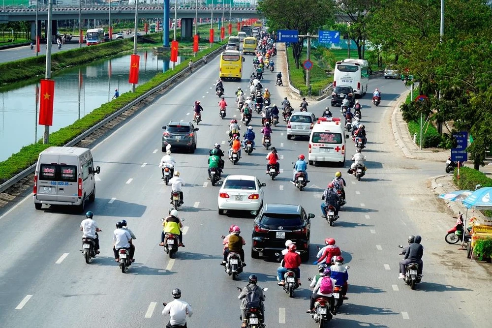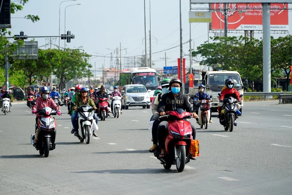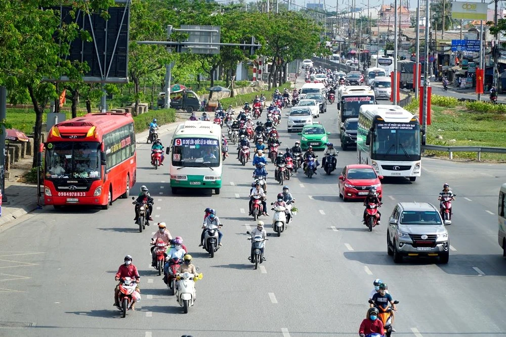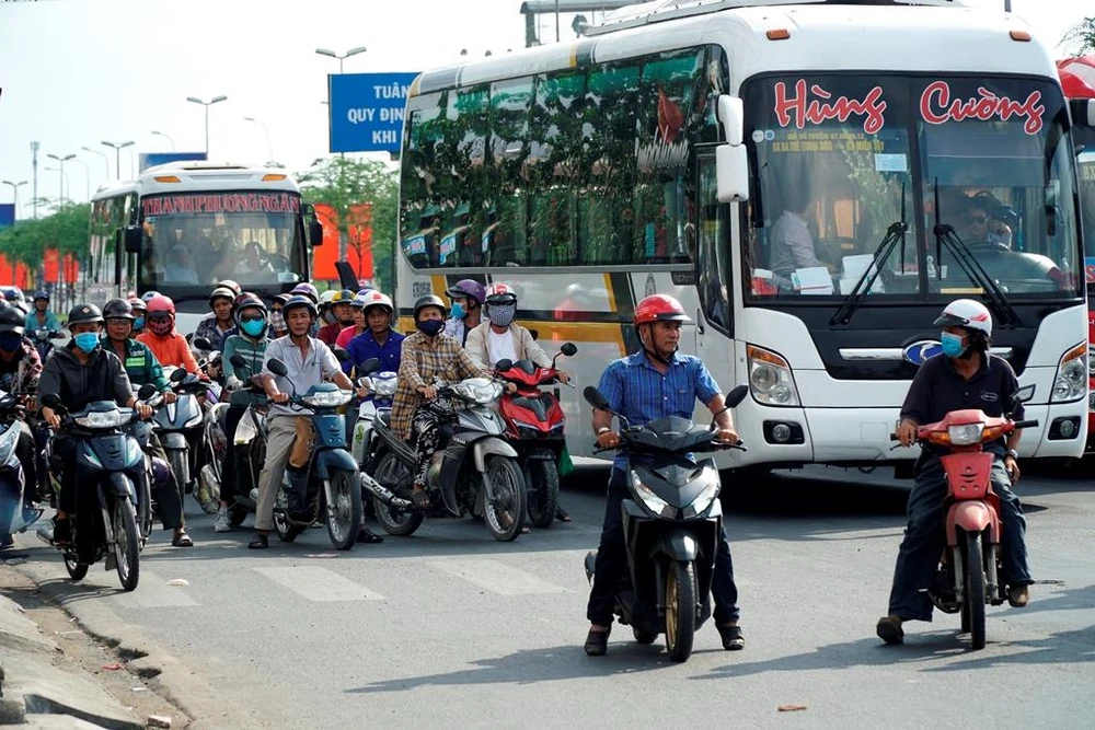 Rất đông các phương tiện, chủ yếu là xe khách và xe máy trở lại TP.HCM làm việc, kết thúc kỳ nghỉ lễ dài ngày.