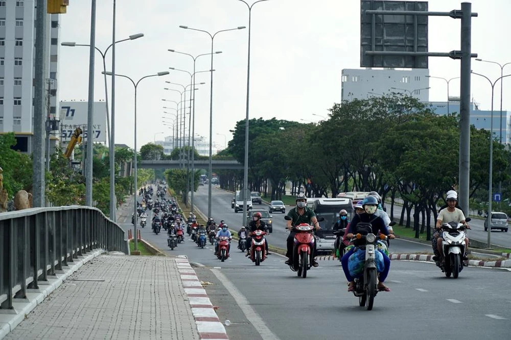 Ghi nhận tại Vòng xoay An Lạc (quận Bình Tân, TP.HCM), xe đông nhưng không gây ùn ứ.
