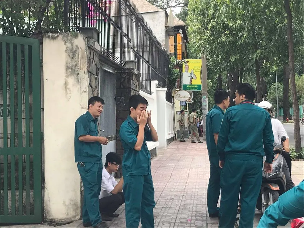 Lực lượng chức năng đã túc trực trước nhà Đại tướng từ sớm. ẢNH: LÊ THOA.
