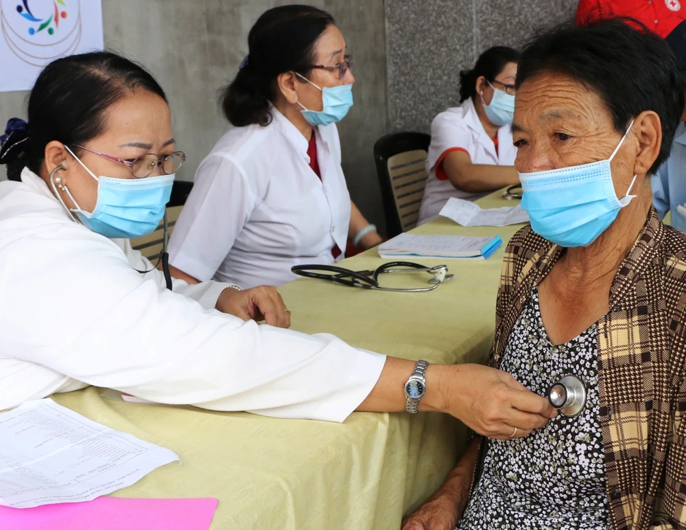 Khám bệnh và phát thuốc miễn phí tại phiên chợ 0 đồng. Ảnh: MINH QUÂN