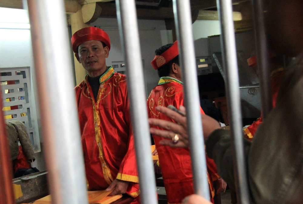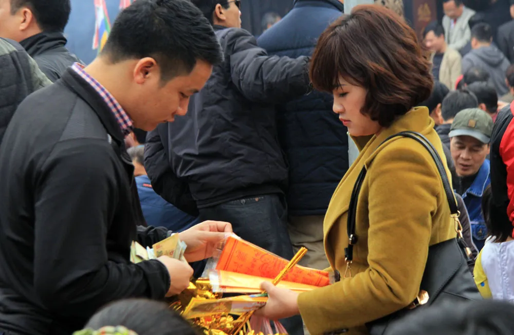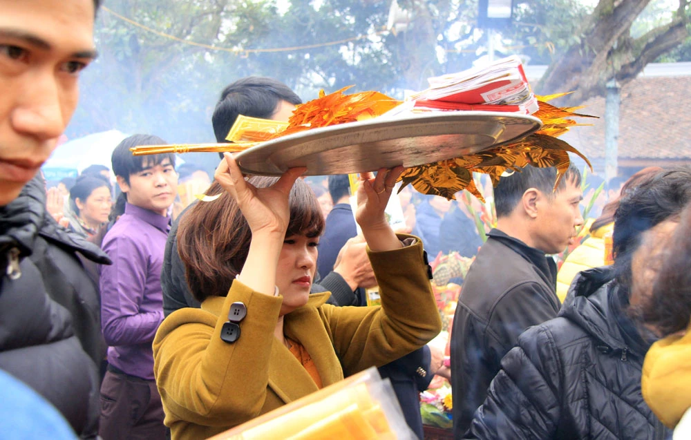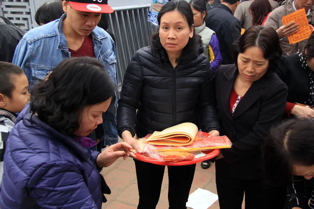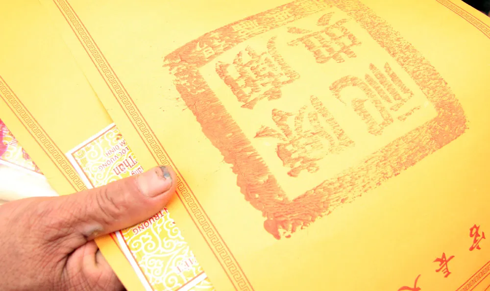 Sau khi có được ấn trong tay, người dân vội vàng đặt lên mâm lễ đã chuẩn bị sẵn để dâng lên đền xin thần Phật chứng giám.