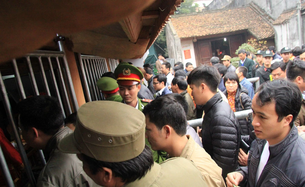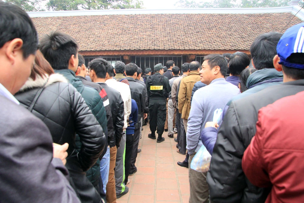 Theo ghi nhận tại đền Trần (Nam Định) trong buổi sáng, nhiều người dân đã có ý thức xếp hàng chờ đến lượt nhà Đền phát ấn.