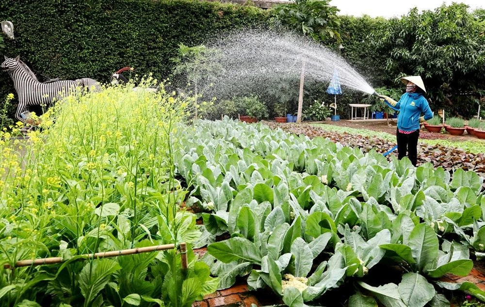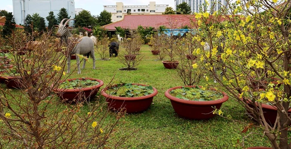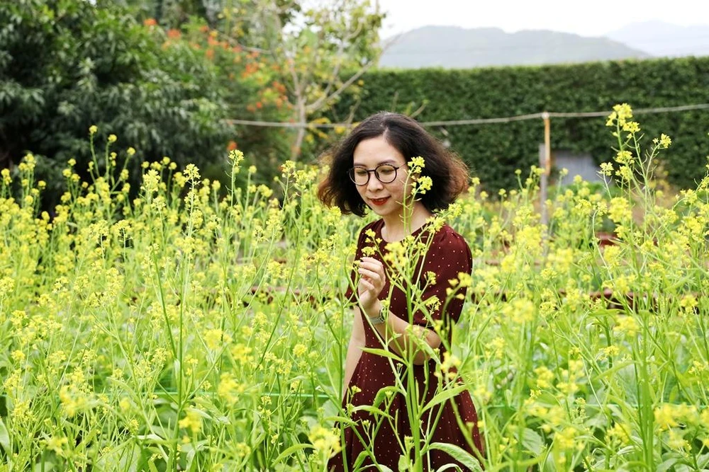 Không chỉ hoa mai, vườn hoa còn tràn ngập sắc xuân với nhiều loại hoa xuân như hướng dương, hoa giấy, hoa lan; các loại rau, bầu bí...