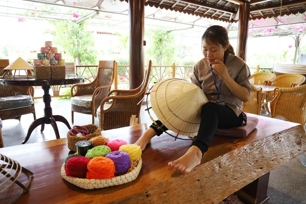 Đặc biệt năm nay ban tổ chức còn bố trí điểm thực hành các nghề truyền thống như làm nón.