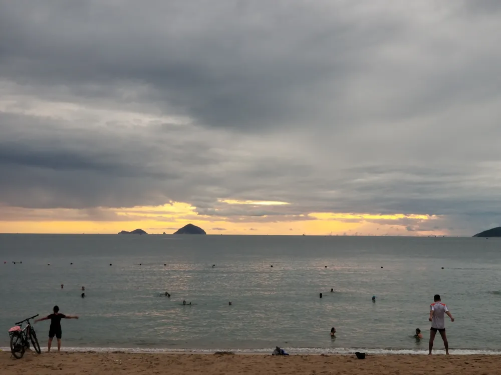 Theo ghi nhận của PLO, dù sáng sớm 16-10, TP Nha Trang nhiều mây, có mưa nhỏ nhưng có rất đông người đi tập thể dục, tắm biển dọc công viên, bãi biển trên tuyến đường Trần Phú, Phạm Văn Đồng.