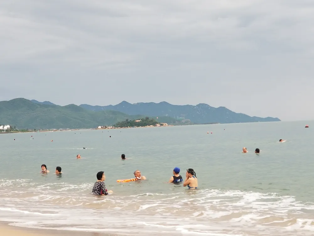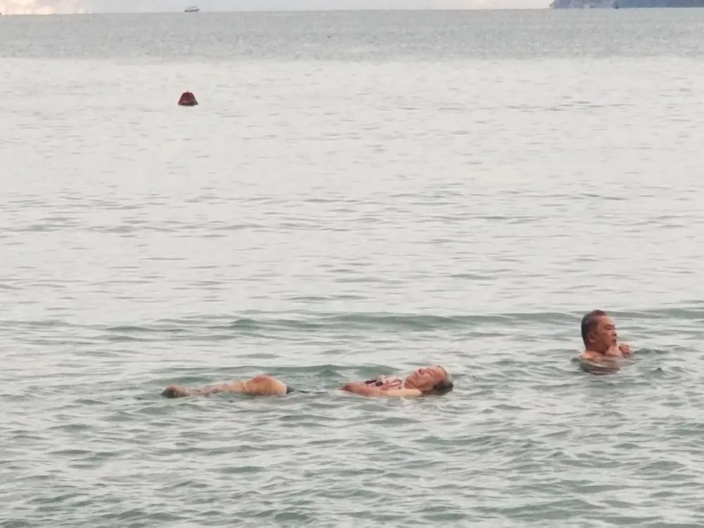 Người dân bơi, ngâm mình trong nước biển. Ảnh: CÔNG NGUYÊN