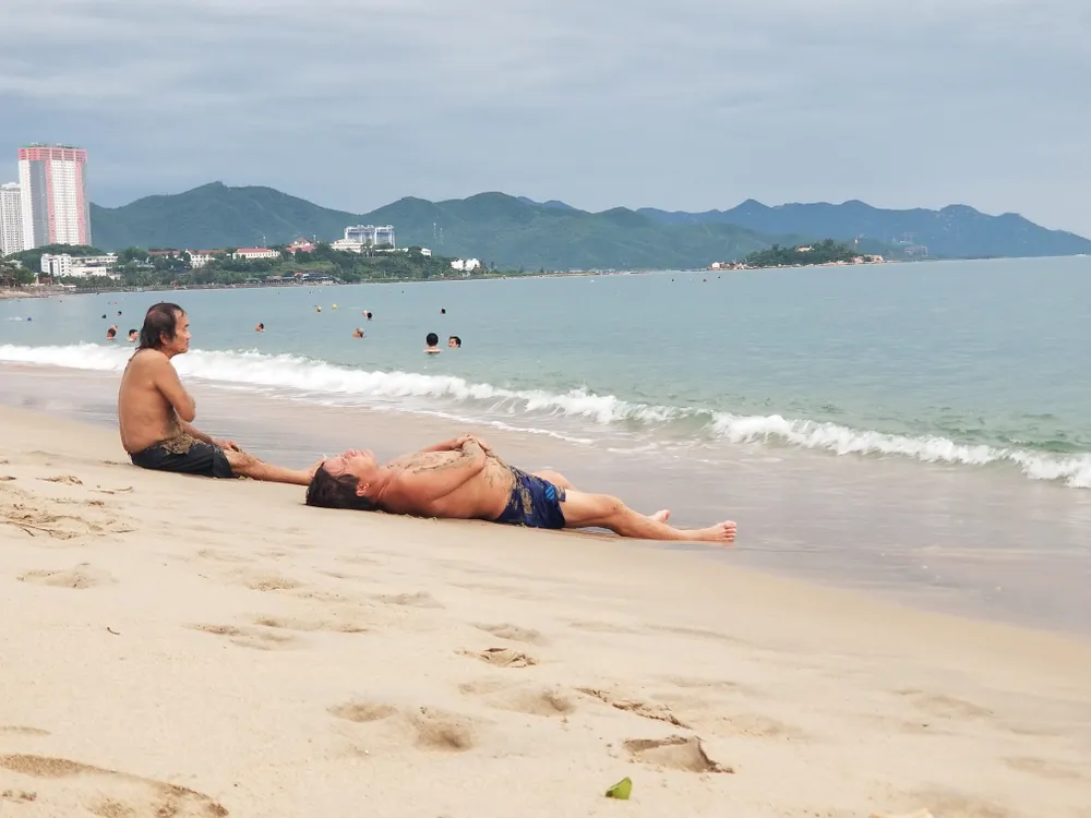 Người dân nằm trên cát. Ảnh: CÔNG NGUYÊN