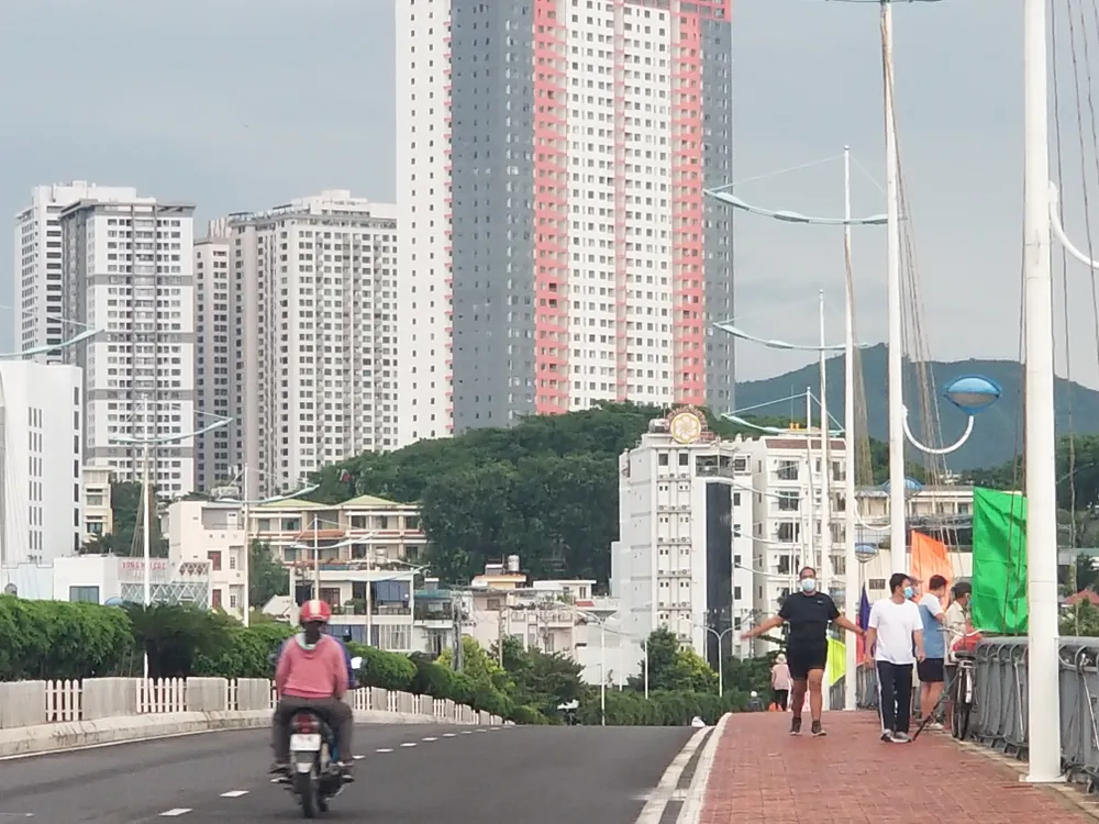 Người dân chạy bộ trên cầu Trần Phú. Ảnh: CÔNG NGUYÊN