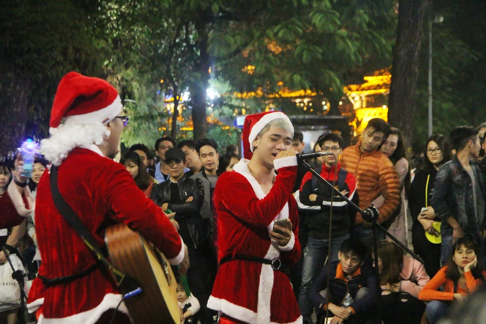 Tối 24/12, rất đông người dân xuống phố chào đón lễ Giáng sinh.