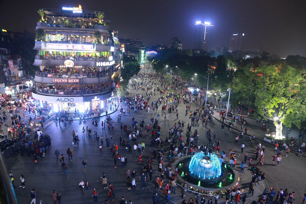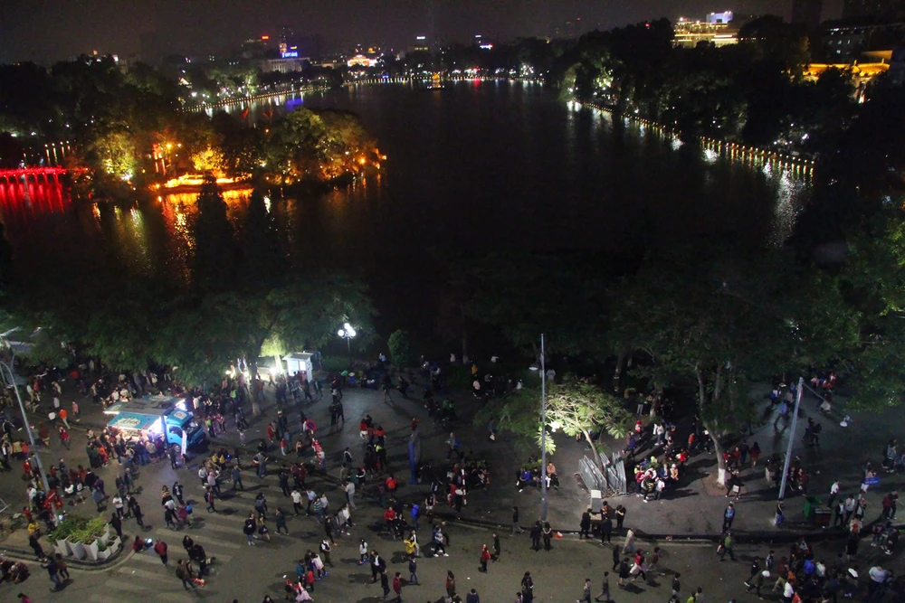 Phố đi bộ quanh Hồ Gươm nhộn nhịp người qua lại ngay từ chập tối