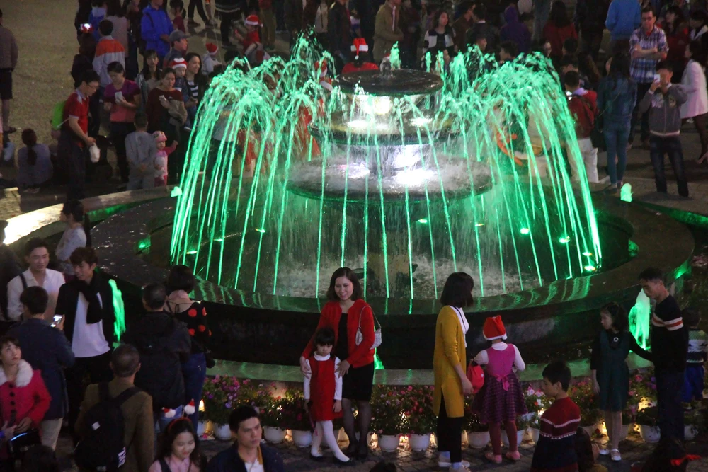Tại đoạn đài phun nước hàm cá mập, nhiều người tranh thủ lưu lại những bức hình đáng nhớ trong mùa giáng sinh năm nay.