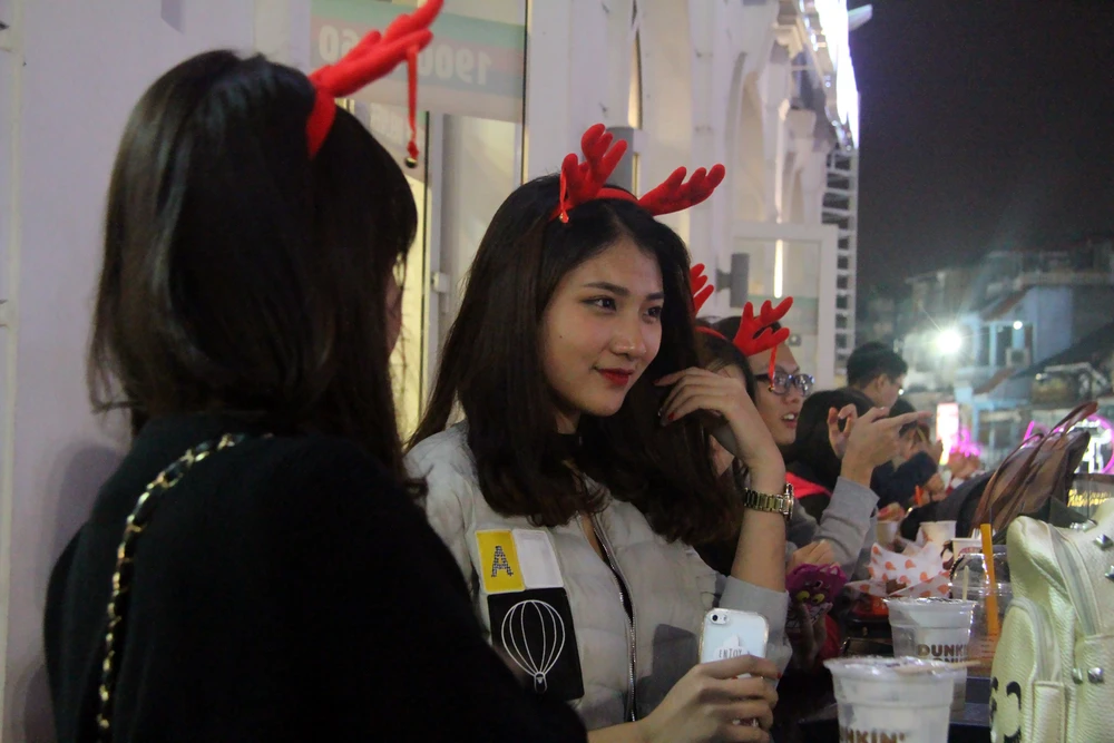 Những cô gái trẻ rạng rỡ trong đêm noel tại Hà Nội