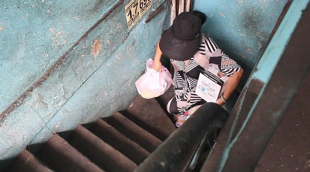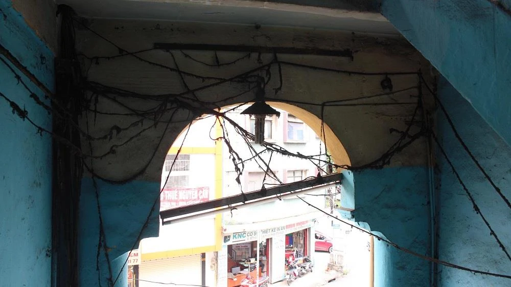 Chung cư chỉ có duy nhất một cầu thang bộ nhỏ để người dân đi lại. Ảnh: HUẾ XUÂN