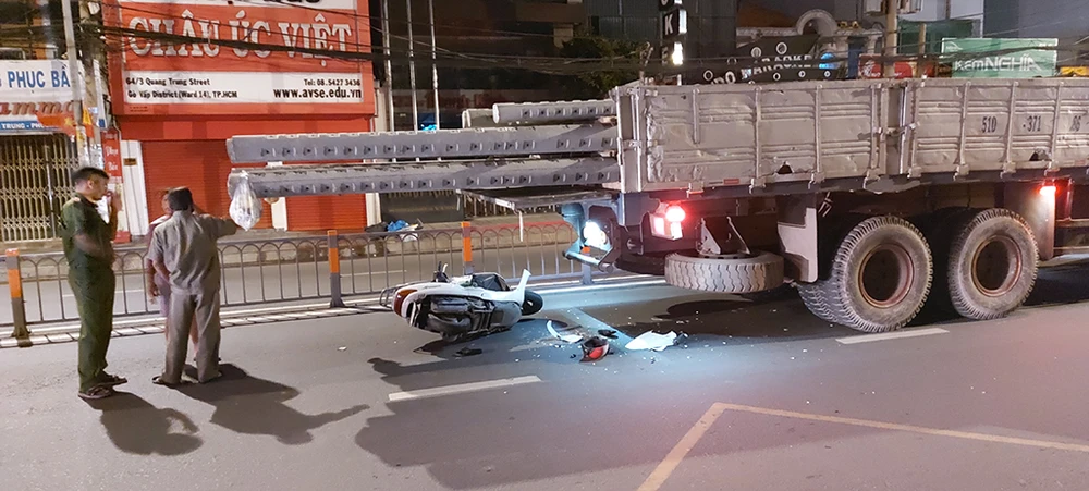 Thông tin ban đầu, khoảng 22 giờ 15, chiếc xe tải cẩu biển số TP.HCM chở nhiều cột điện bê tông lưu thông hướng quận 12 về Gò Vấp.