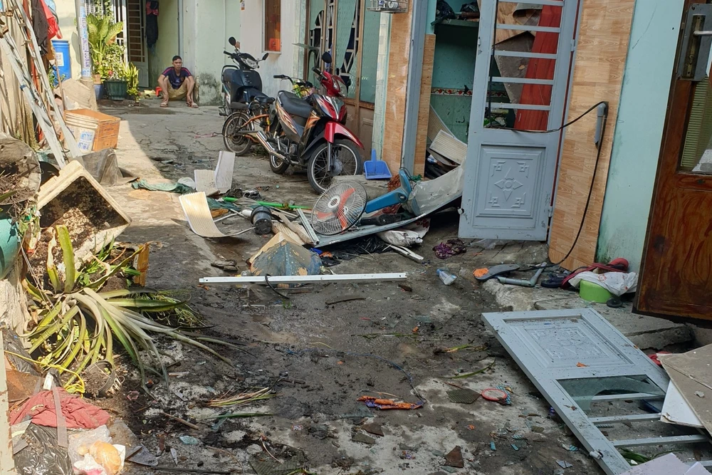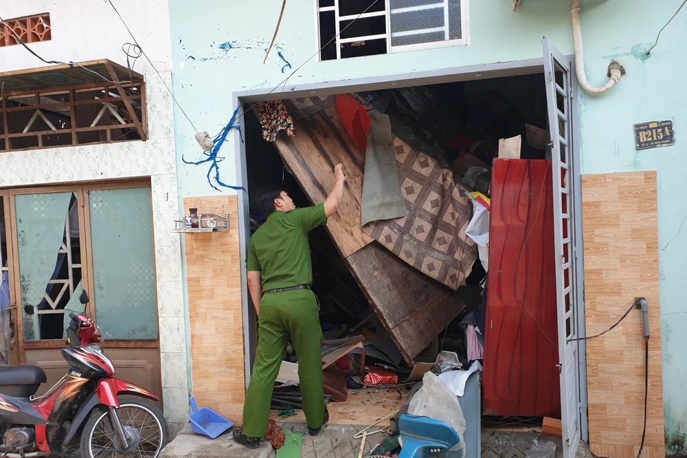 Tại hiện trường, toàn bộ ngôi nhà bị sức ép của vụ nổ gây hư hỏng, mái tôn, các cánh cửa bị văng xa, nhiều tài sản trong nhà cũng bị hư hỏng nặng.