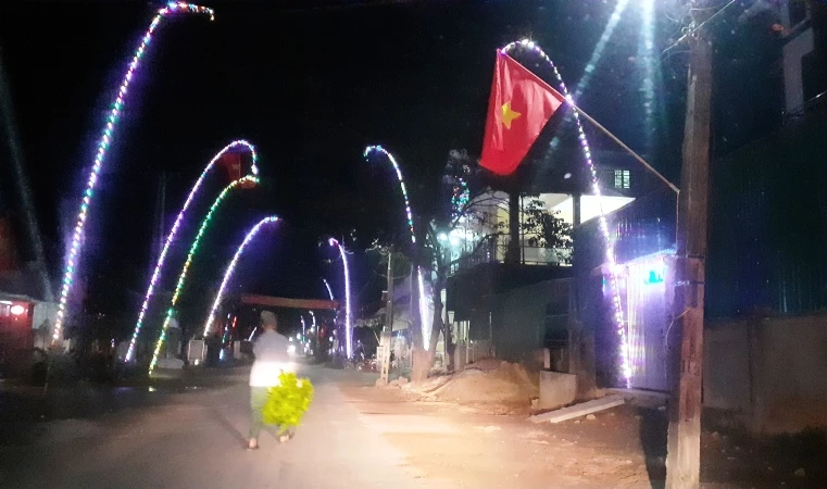 Nhiều người dân ở Nghệ An dựng cây nêu có lắp đèn điện nhấp nháy chuẩn bị đón Tết Nguyên đán Canh Tý 2020.