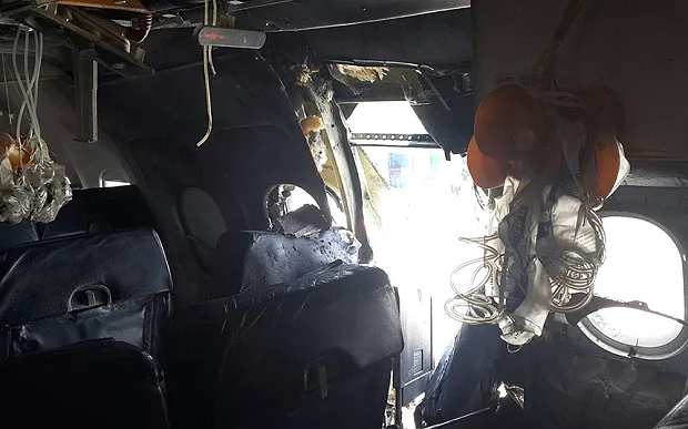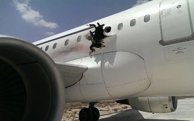 Một người đàn ông bị thiêu cháy đã bị hút ra khỏi máy bay qua một lỗ hổng gây ra bởi một vụ nổ bom. Máy bay phải hạ cách khẩn cấp ở Mogadishu, thủ đô Somali vào hôm thứ ba vừa qua.