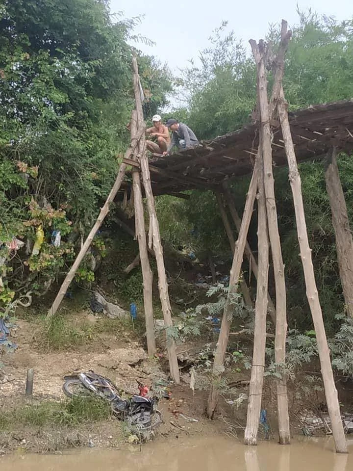 Khi qua cây cầu gỗ bắc qua Sông Đợt thì cả người và xe chao đảo rồi rơi xuống sông do hai bên thành cầu không có lan can.