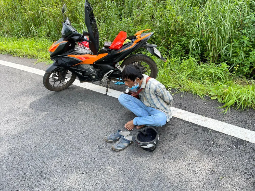 Tcheng Cún Bẩu chạy xe máy vào cao tốc TP. HCM – Long Thành – Dầu Giây để sử dụng ma tuý bị CSGT bắt giữ. Ảnh: CA