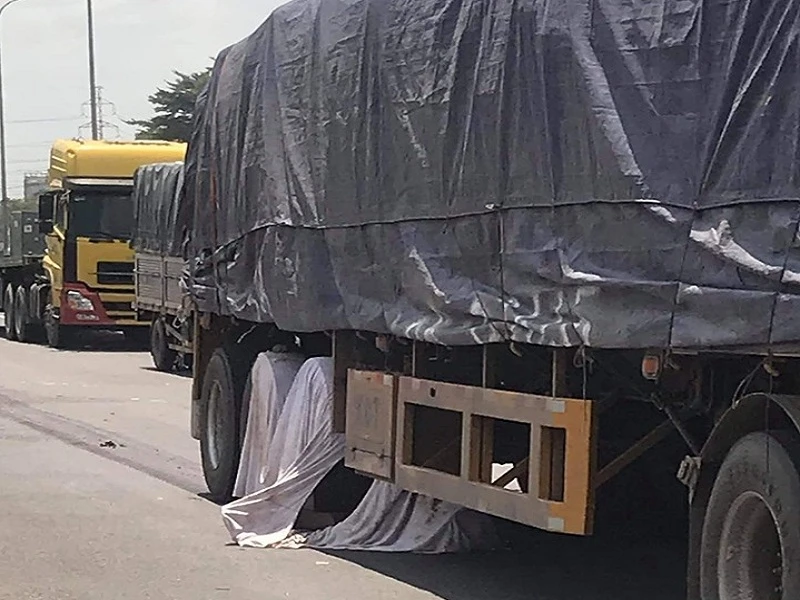 Cú va chạm khiến người đàn ông cùng xe máy ngã xuống đường và bị bánh xe đầu kéo chèn qua khiến nạn nhân tử vong tại chỗ.