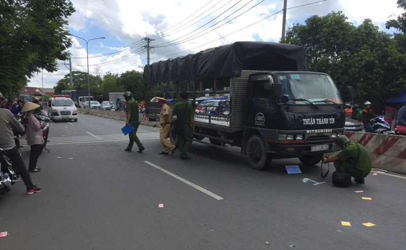 Công an khám nghiệm hiện trường vụ tai nạn xảy ra tại thị xã Dĩ An, tỉnh Bình Dương. Ảnh: NGỌC THẠCH