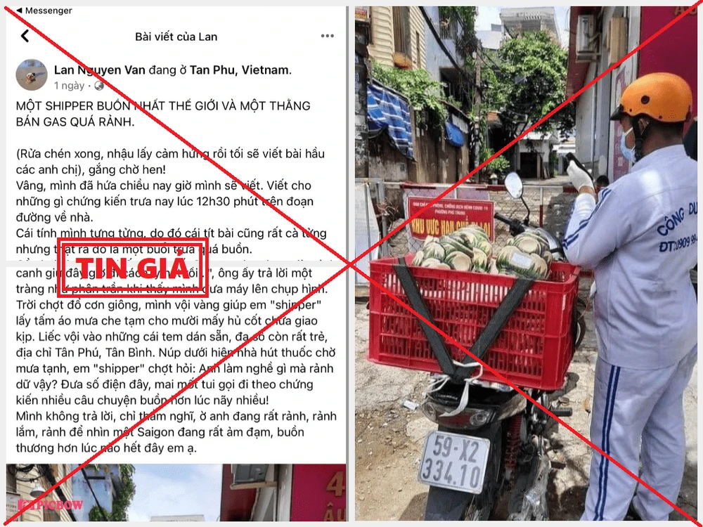 Trước đó, ngày 5-8, Công an quận Tân Phú phát hiện tài khoản “Lan Nguyen Van” đăng bài viết có tiêu đề “MỘT SHIPPER BUỒN NHẤT THẾ GIỚI VÀ MỘT THẰNG BÁN GA QUÁ RẢNH” kèm hình ảnh trên đường Âu Cơ (phường Phú Trung, quận Tân Phú) với nội dung nói về việc một nhân viên mặc đồ bảo hộ màu trắng chở các hũ được cho là tro cốt của người chết do dịch COVID-19, giao tại hẻm 42 Âu Cơ.