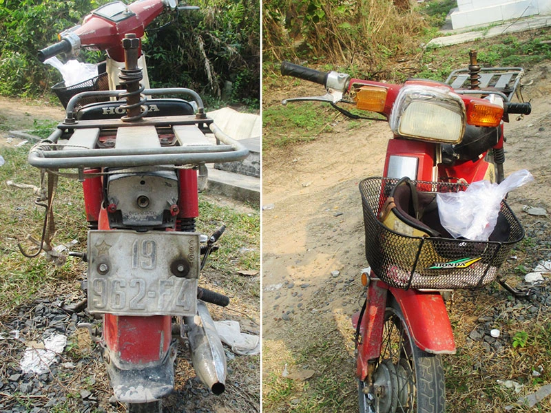 Chiếc xe máy của nạn nhân ở hiện trường. Ảnh C.A.