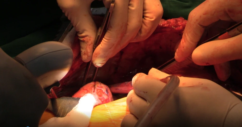 Ca phẫu thuật diễn ra tại BV Việt Đức. (Ảnh cắt từ clip)