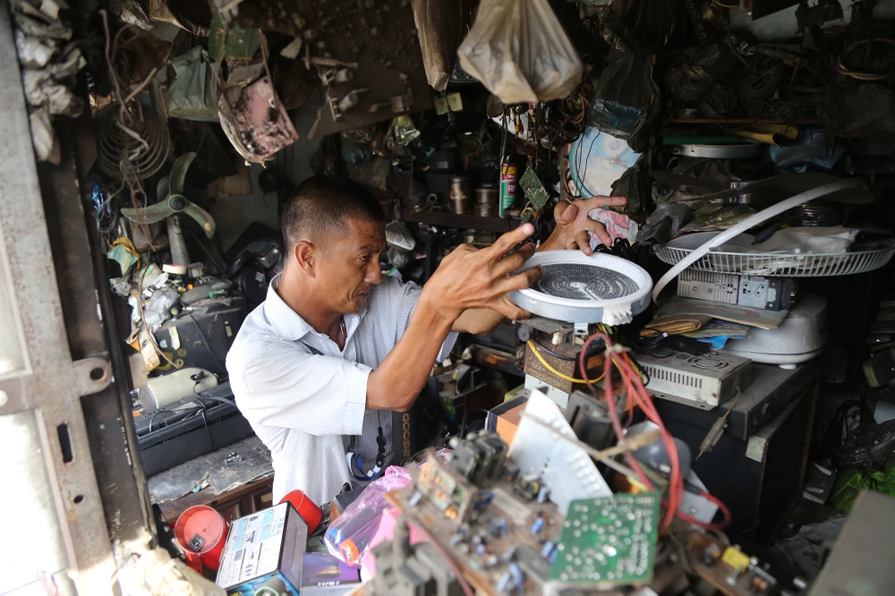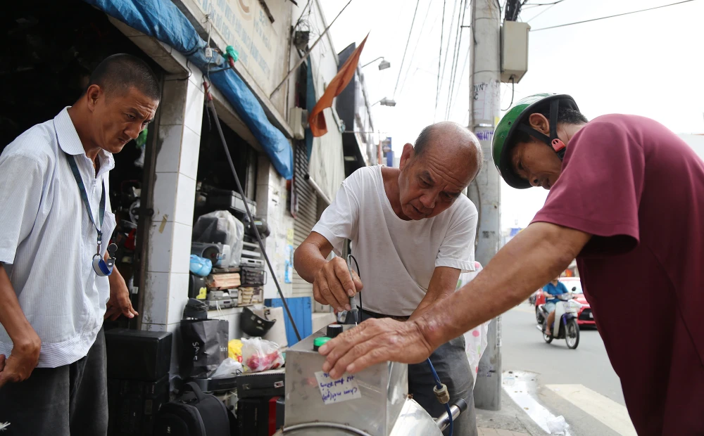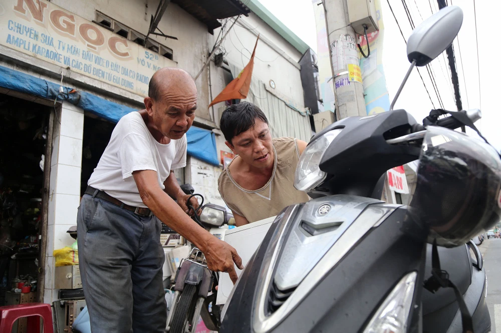 Ông Trí cho hay, thu nhập từ nghề mang lại rất vô chừng, có bữa ông và con trai chỉ ngồi chơi, có bữa được vài chục, bữa nào may mắn mua được chiếc máy cũ còn tốt về tân trang bán lại thì có lời chút ít.