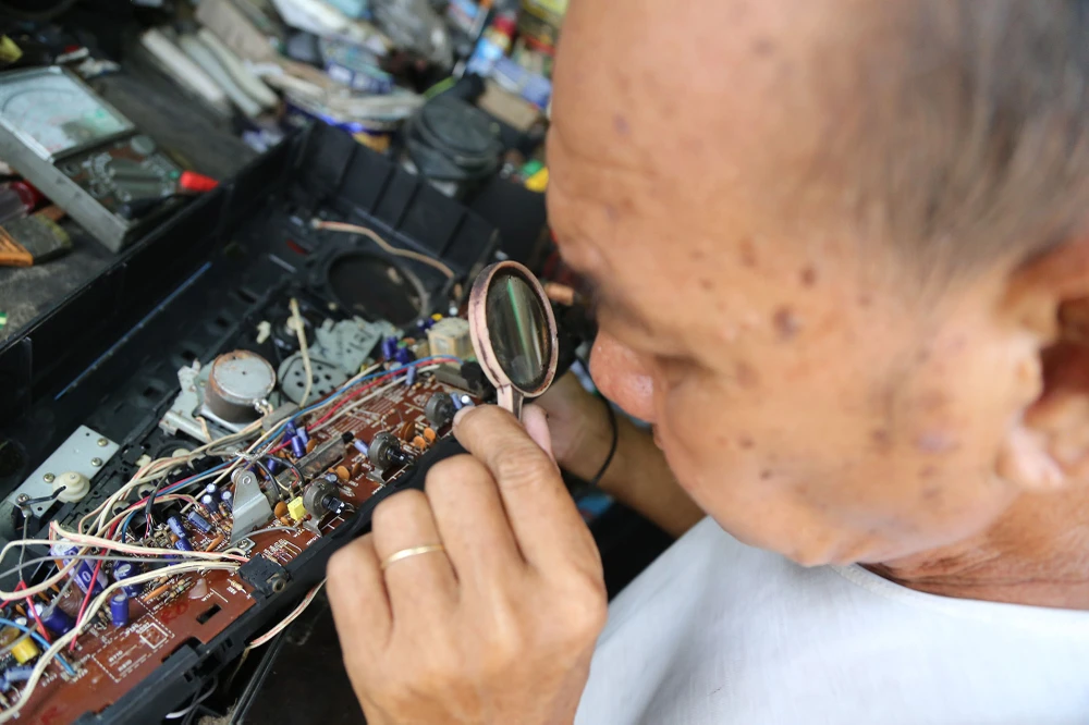 Gần 50 năm làm nghề, qua tay hầu hết các loại đồ dùng điện tử của nhiều thập niên trước, đến nay khi những sản phẩm với công nghệ mới đã thay dần những máy móc cũ, ông Trí vẫn cố gắng bám trụ với nghề, trong khi những đồng nghiệp của ông đã bỏ nghề tìm kế sinh nhai khác.