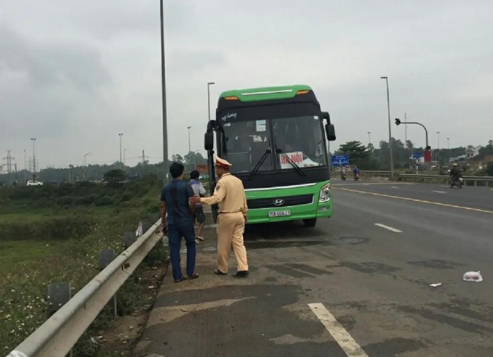 Anh Sơn được đưa lên xe khách để về Nghệ An. Ảnh do CSGT cung cấp
