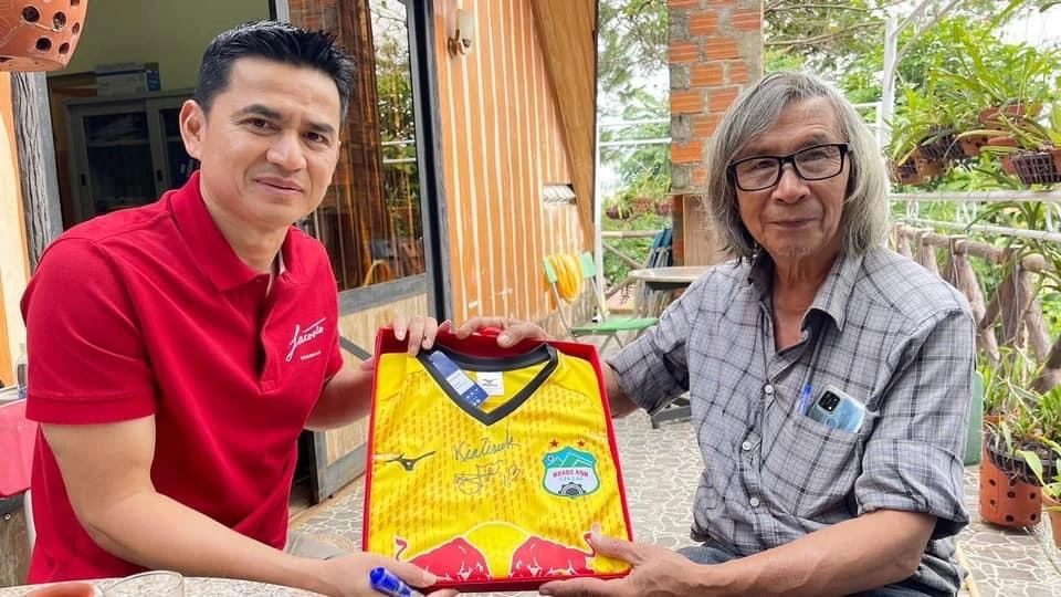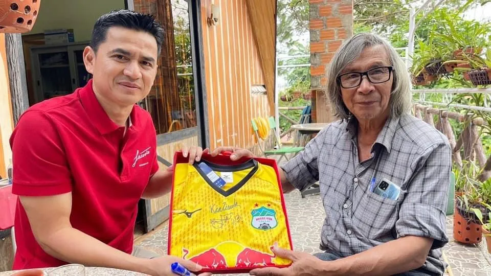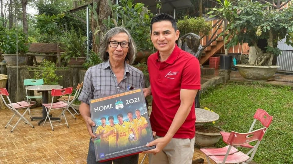 Kiatisak tìm đến nhà anh Tân “Trường sơn” để trò chuyện như đôi bạn tri kỷ và tặng anh Tân những món quà ý nghĩa của CLB HA Gia Lai.
