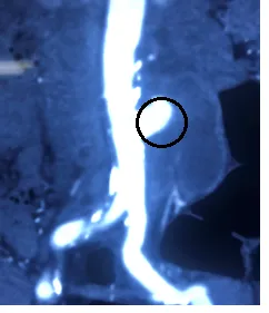 Phim MSCT scan ghi nhận túi phình có huyết khối xung quanh của bệnh nhân đầu tiên. Ảnh: BVCC