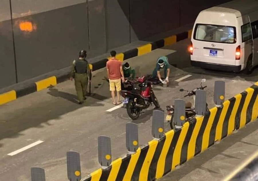 Ông M rơi xuống hầm chui lộ thiên tại nút giao thông Trần Thị Lý, tử vong tại chỗ. Xe máy bị mắc kẹt ở lan can cầu, vỡ nát.