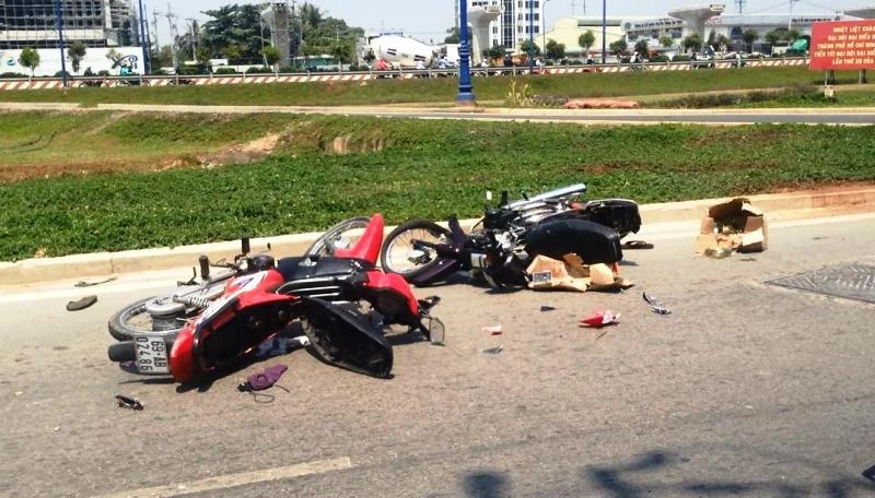 Khi đến gần chỗ quay đầu dưới cầu Rạch Chiếc (phường An Phú, quận 2, TP.HCM) thì tông thẳng xe vào xe máy biển số Long An của một nam thanh niên chạy cùng chiều.