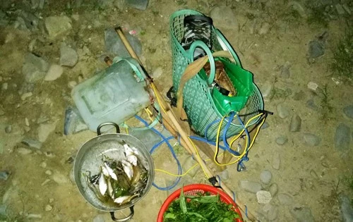 Thông tin điều tra bước đầu, chiều 7-9, K’Sép mang bộ dụng cụ xung điện (bình ắc quy, cần rà) đến khu vực suối 7 (thuộc thôn Phước Bình, xã Phước Lộc) để chích cá.
