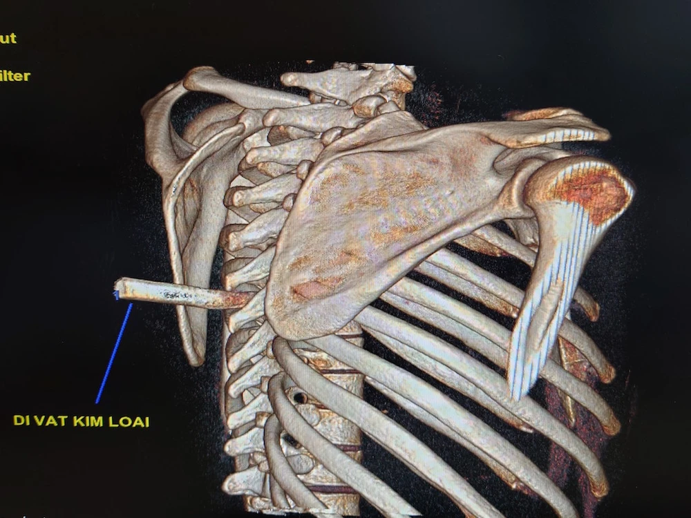 Tiến hành siêu âm, chụp X-quang, bác sĩ phát hiện mũi dao đâm vào đoạn cột sống ngực 4-5 của bệnh nhân.