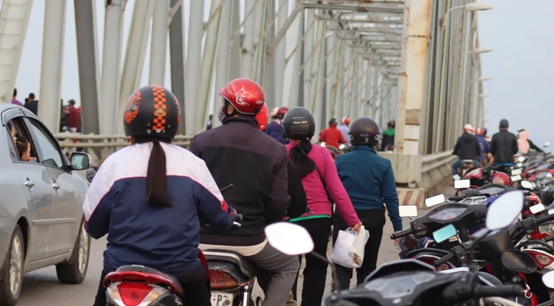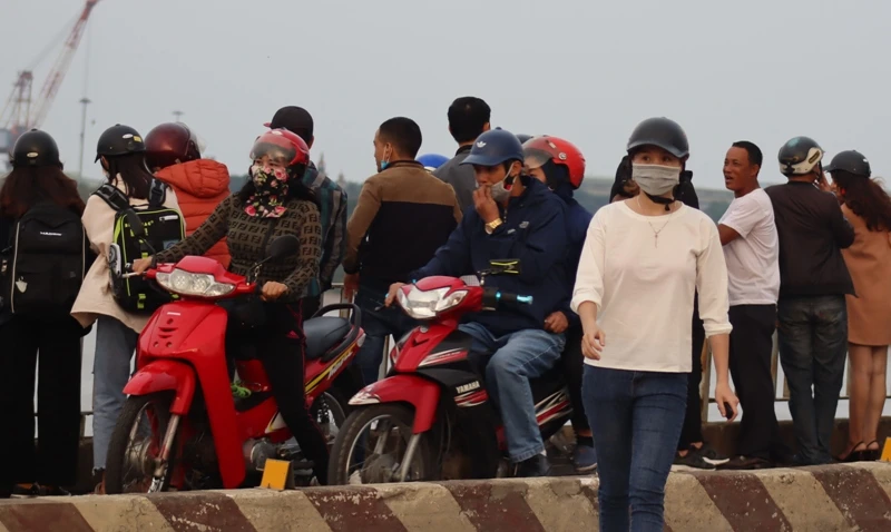 Do quá đông người dân dừng xe và đứng trên cầu Bến Thủy dõi theo công tác tìm kiếm cứu nạn dẫn đến cầu Bến Thủy bị ách tắc giao thông.