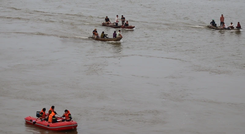 Chiều và tối nay, người thân, ngư dân cùng lực lượng Phòng Cảnh sát PCCC và cứu nạn, cứu hộ (Công an tỉnh Nghệ An) đang đi thuyền tìm kiếm người đàn ông trên hạ nguồn sông Lam và dưới chân cầu Bến Thủy.