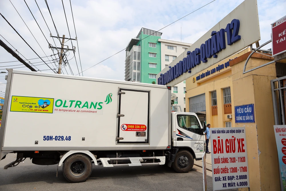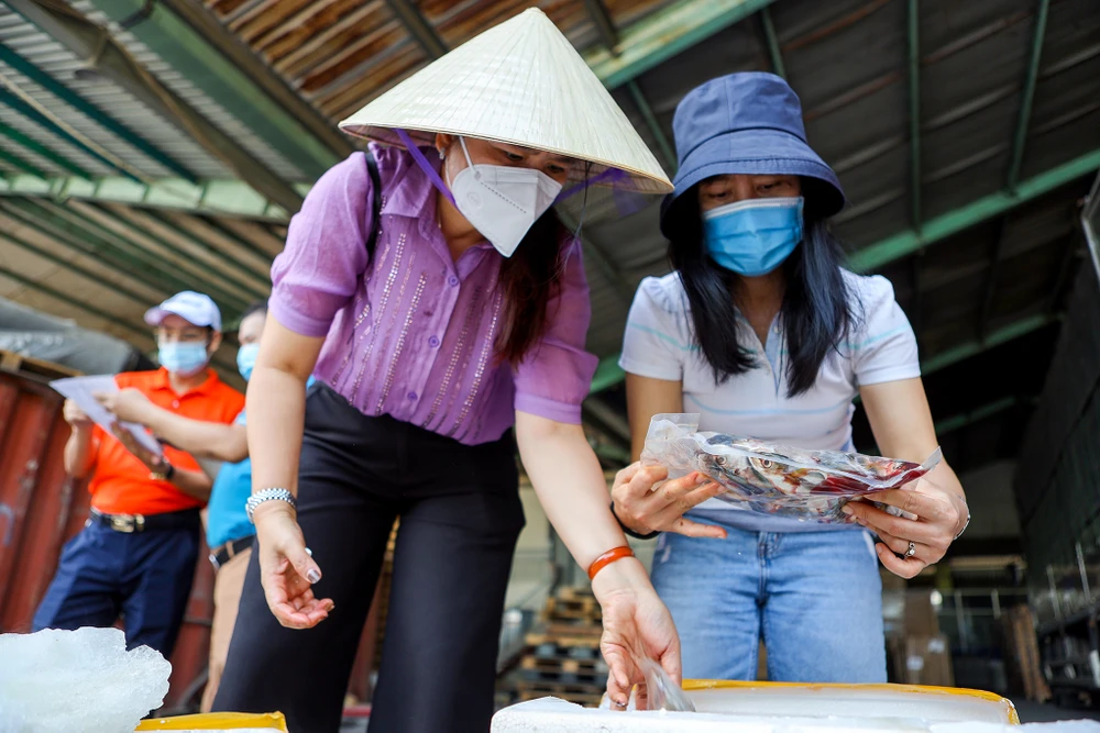 Ban tổ chức huy động 2 xe chuyên dụng phân phối cá đi nhiều khu vực trên địa bàn TP.HCM