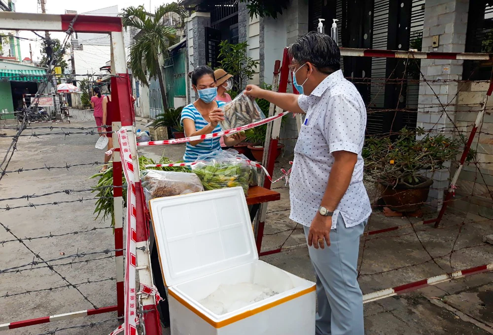 Người dân trong khu vực phong tỏa nhận cá từ chương tình "Góp cá gửi TP.HCM".