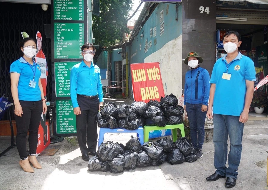 Trong ngày 2-8, LĐLĐ quận Bình Thạnh đã phân bổ 700 kg gạo, 500 kg thanh long, 700 kg bắp cải đến 3 đơn vị doanh nghiệp thực hiện “3 tại chỗ” gồm: Công ty TNHH Alpha Việt Nam, Công ty cổ phần văn hóa Văn Lang và Công ty TNHH may Thái Sơn S.P. Số còn lại được gửi đến 500 hộ dân tại các khu phong tỏa, điểm cách ly trên địa bàn 9 phường: phường 2, phường 6, phường 7, phường 12, phường 13, phường 17, phường 24, phường 25 và phường 28 quận Bình Thạnh.