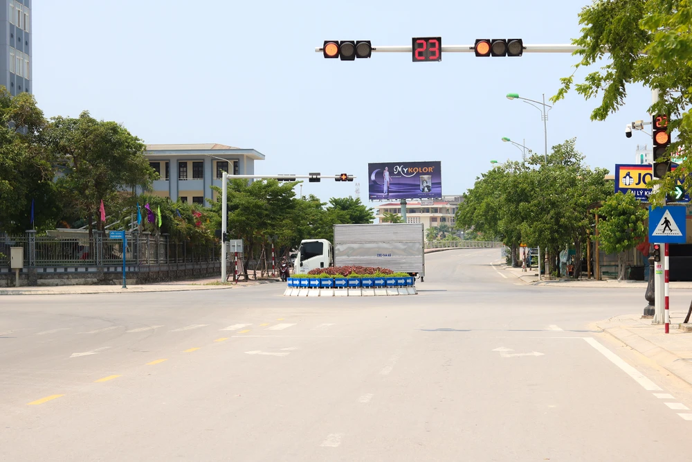 Dưới mức nhiệt từ 39-40 độ C, nhiều tuyến đường lớn trên địa bàn TP Đồng Hới (Quảng Bình) vắng bóng người qua lại. Ảnh: BẢO THIÊN |