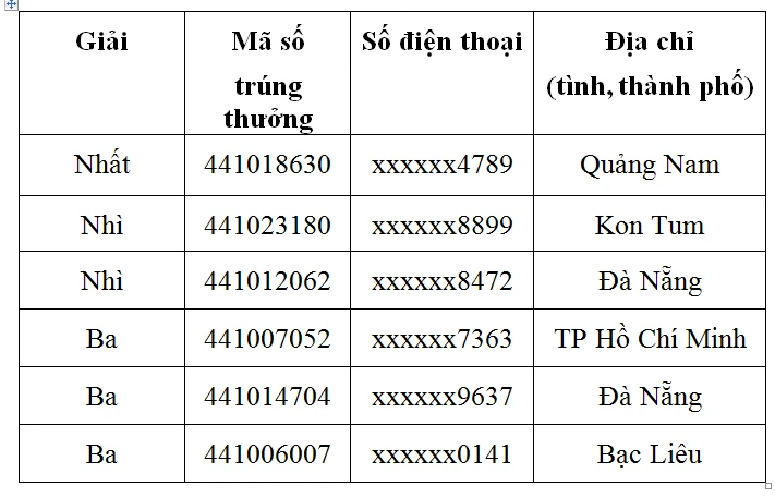 Trên cơ sở Thể lệ và Hướng dẫn tham gia cuộc bình chọn bằng hình thức lựa chọn ngẫu nhiên trong số các khách hàng tham gia bình chọn Mẫu hóa đơn số 4, Ban Tổ chức chương trình đã xác định được 6 mã số trúng thưởng tương ứng với những người tham gia bình chọn như sau: