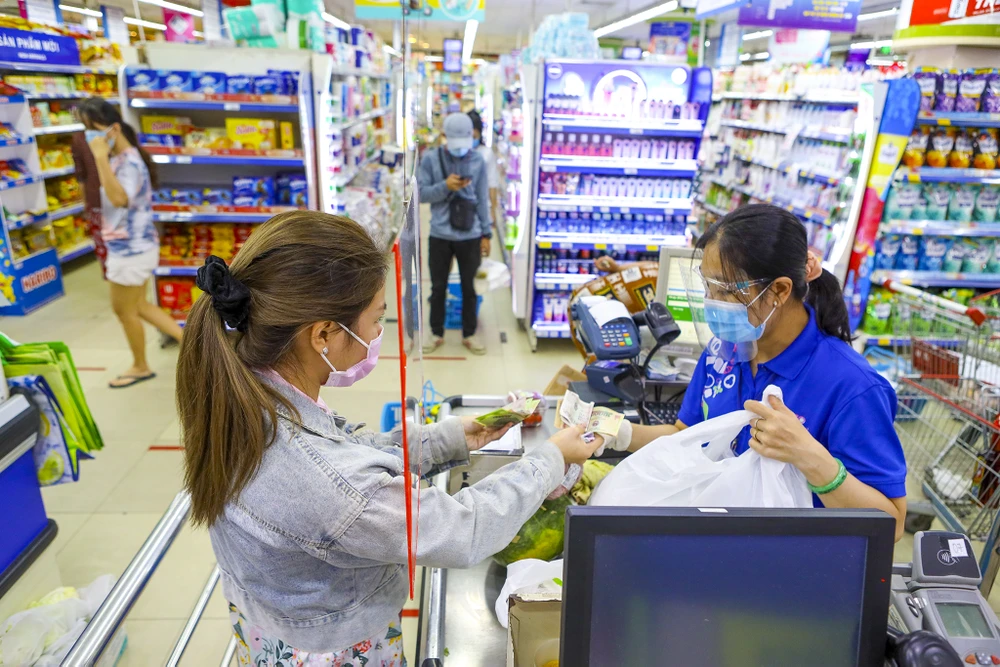 Tại khu vực thành toán, siêu thị bố trí tấm chắn ngăn ngừa mầm bệnh.
