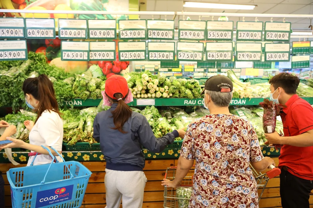 Các mặt hàng như rau củ quả, đồ khô liên tục được nhân viên bổ sung, giá cả tương đối bình ổn cho người dân yên tâm mua sắm trong những ngày giãn cách.
