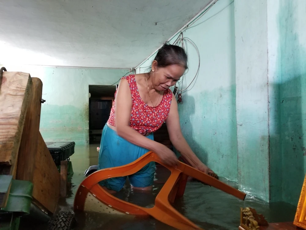 Trong ngày hôm nay (11-12), địa bàn TP Tam Kỳ không còn mưa, nước bắt đầu rút. Tuy nhiên, nhiều khu vực vẫn còn ngập trong nước.